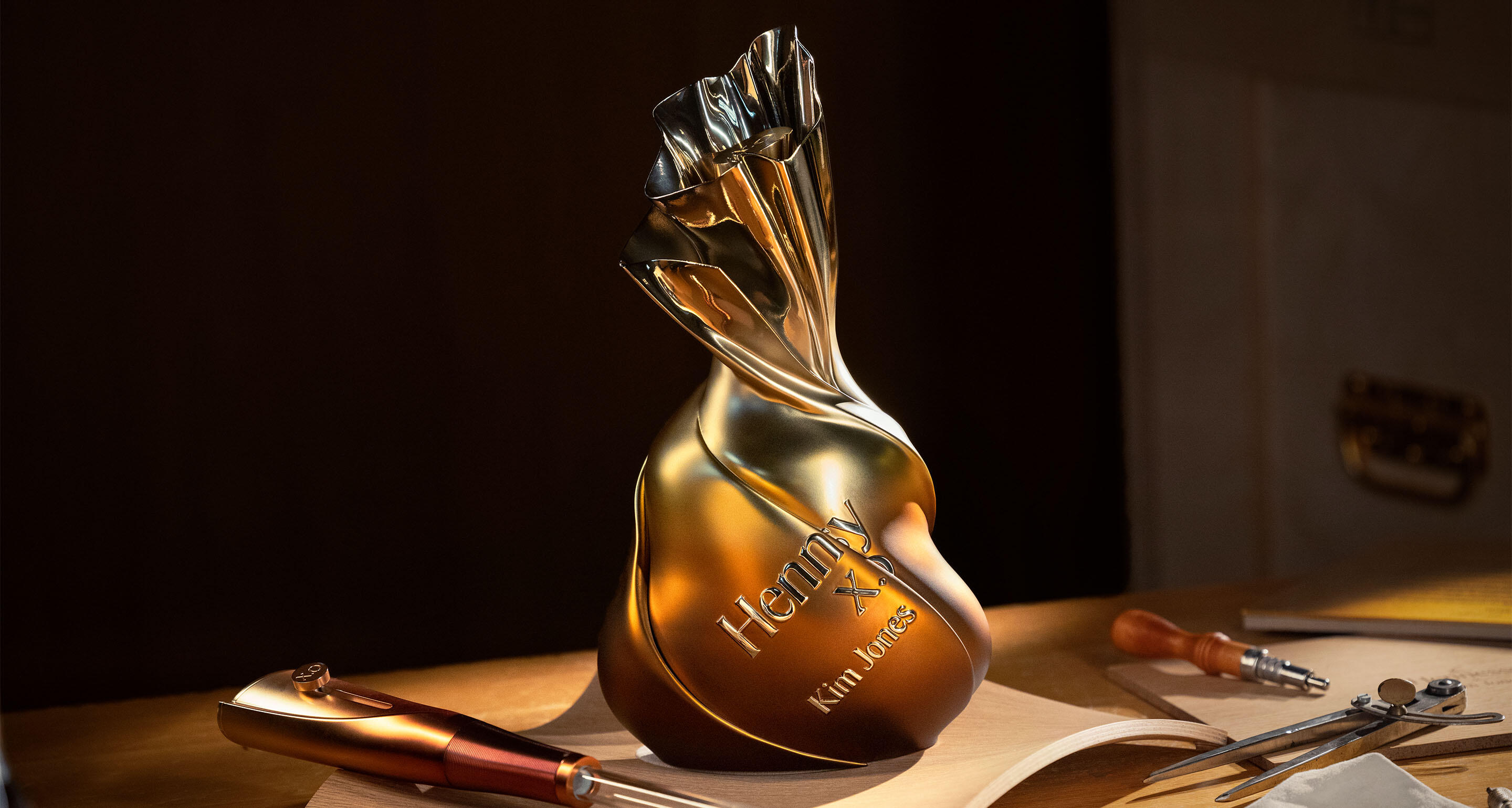 Designed exclusively for the Maison, the sculptural Hennessy X.O x Kim Jones Masterpiece is the ultimate expression of this collaboration. Produced using 3D printing technology and finished by hand, the specially developed titanium casing embraces the iconic shape of Hennessy X.O while evoking a couture silhouette reminiscent of a fashion garment.