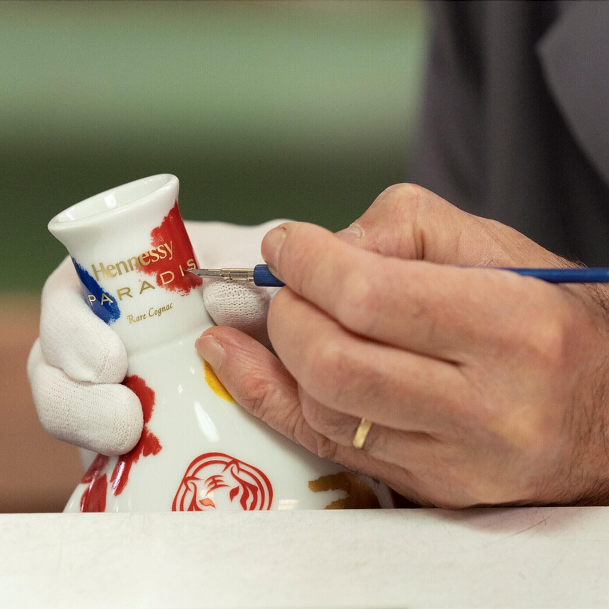 Réputée pour sortir des utilisations conventionnelles de la porcelaine, la Manufacture Bernardaud vient compléter le savoir-faire Hennessy en réalisant une carafe unique et dédiée à l’assemblage Hennessy Paradis. Cinq pièces de cette édition limitée d'un litre, décorées à la main, sont disponibles à la Boutique Hennessy au prix de 8800€.